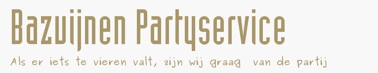Welkom bij Bazuijnen Partyservice! Met deze website proberen wij u een indruk te geven van de mogelijkheden die wij u kunnen bieden. Maar natuurlijk is het niet mogelijk om alles te verwoorden. Ieder feest is weer anders en wordt naar uw wensen verzorgd en aangekleed. U kunt ons altijd bellen of mailen voor meer informatie, een vrijblijvende offerte of een afspraak.